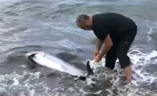 Yayla sahilinde işletmesi de bulunan iş adamı Altunhan, lodos nedeniyle karaya vuran 3 yunusu yeniden denizle kazandırdı. Altunhan’ın yunus balıklarını kurtarma görüntüleri sosyal medyada takdir topladı.