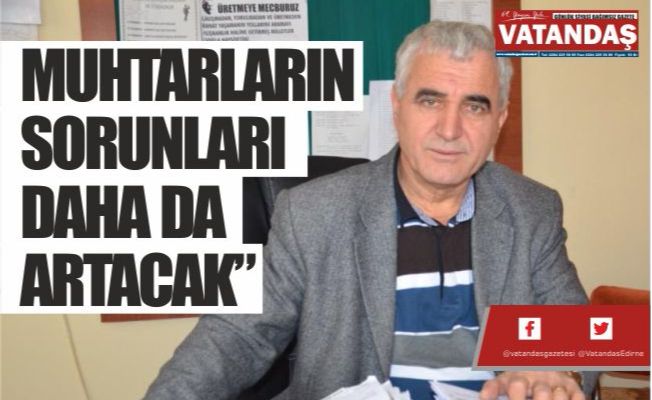 Edirne Muhtarlar Derneği Başkanı İrfan Tasmalı muhtarların halka yakın devlet görevlisi olduğunu, Edirne'nin Büyükşehir olması halinde köy muhtarlarının sorunlarının artacağını belirtti.
