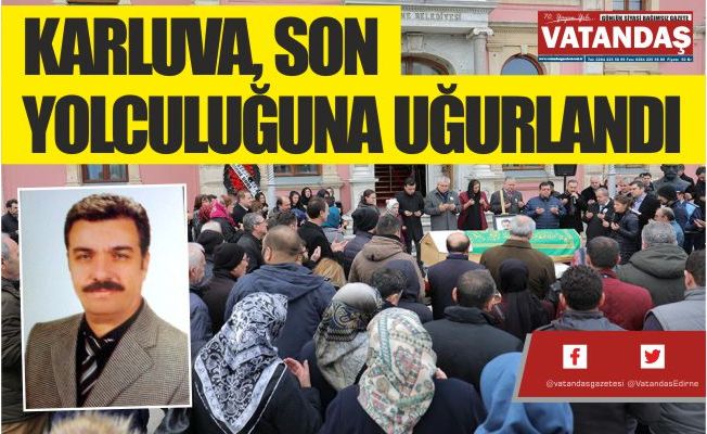 Edirne Belediyesi Hukuk İşleri Müdürü Suat Karluva için Edirne Belediyesi önünde tören düzenlendi. Törene Belediye Başkan Vekili Selçuk Çakır, Başkan Yardımcıları Çiğdem Gegeoğlu, Hüsnü Güler, daire müdürleri, çalışma arkadaşları, eşi Fatmahan Karluva ile çocukları Oğuzhan, Rüya ve Yiğit Asyabahis Karluva, yakınları ve dostları katıldı.