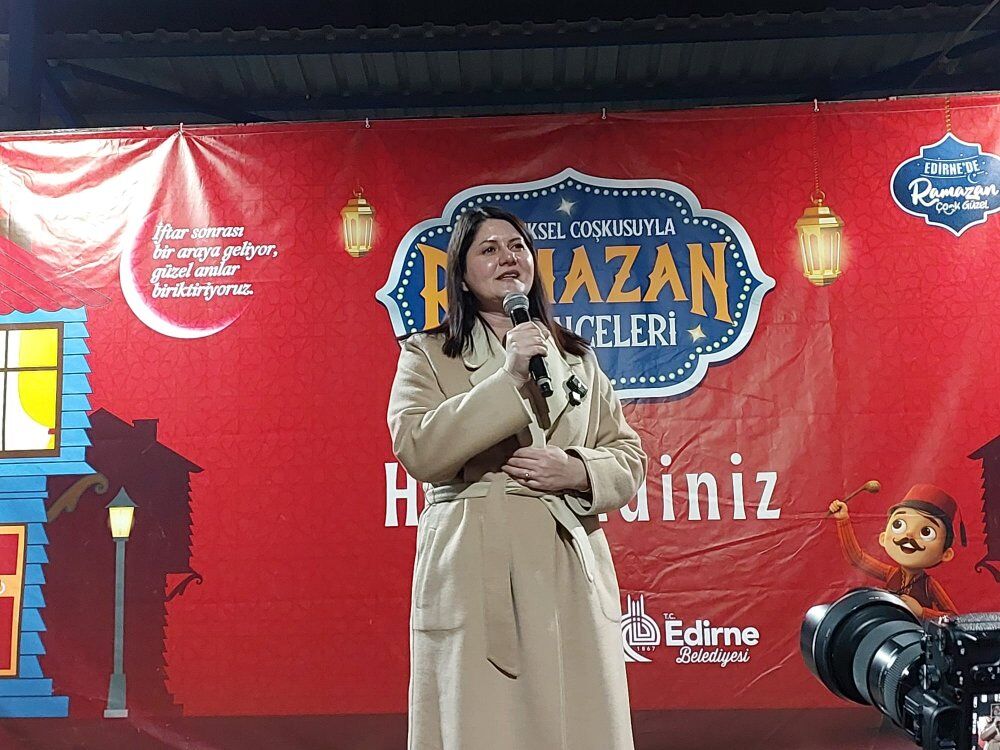 İftar programında konuşan Belediye Başkanı Av.Filiz Gencan, Ramazan ayı boyunca Edirne’nin farklı mahallelerinde iftar programları düzenlemeye devam ettiklerini belirtti. Ramazan’ın paylaşma, dayanışma ve birlik duygularını güçlendirdiğini ifade eden Gencan, vatandaşlarla aynı sofrayı paylaşmaktan mutluluk duyduklarını söyledi.
