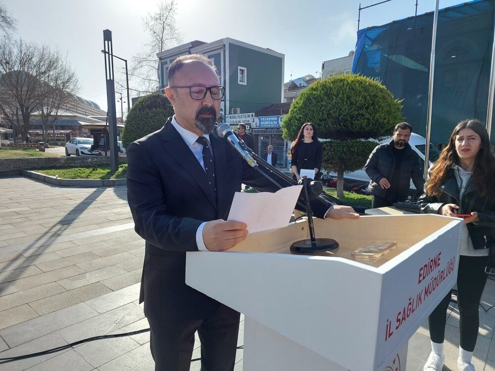 Edirne İl Sağlık Müdür Vekili Opr. Dr. Mustafa Talha Sütçü de konuşmasında, hekimlik mesleğinin insanlık tarihi kadar eski ve önemli olduğunu belirtti. “Görevimiz, insanın en değerli hazinesi olan sağlığını korumak ve iyileştirmektir” dedi.