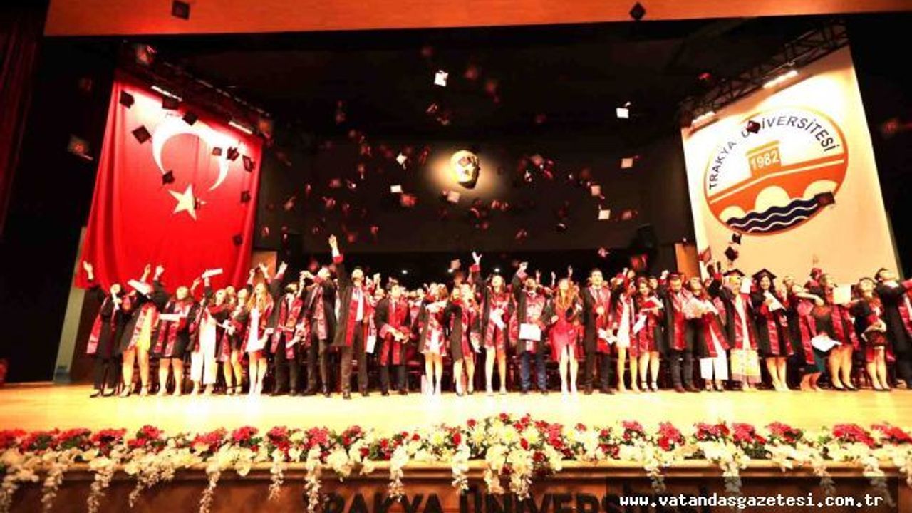 Trakya Üniversitesi Tıp Fakültesi’nden 2018-2019 eğitim-öğretim döneminde mezun olan 197 öğrenci, dün Balkan Kongre Merkezi’nde gerçekleştirilen törende kep attı. Mezuniyet törenine, Trakya Üniversitesi Rektörü Prof. Dr. Erhan Tabakoğlu, Edirne İl Sağlık Müdürü Ali Cengiz Kalkan, Tıp Fakültesi Dekanı Prof. Dr. Muzaffer Demir, rektör yardımcıları, dekanlar, öğretim görevlileri ve öğrencilerin aileleri katılım gösterdi.