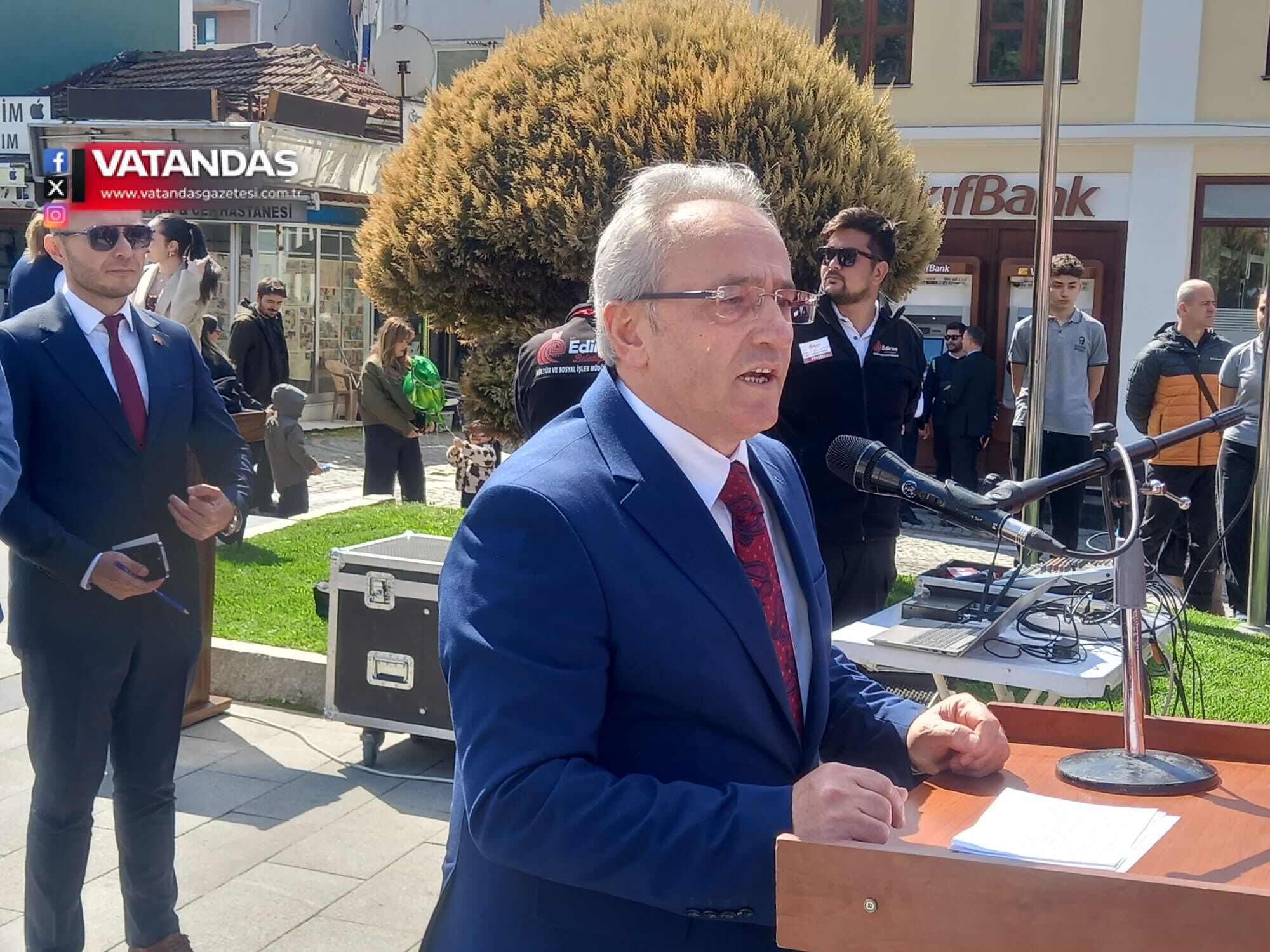 Törene Edirne İl Millî Eğitim Müdürü Dr. Ahmet Alireisoğlu, siyasi parti temsilcileri, gaziler, vatandaşlar ve farklı ülkelerden öğrenciler katıldı.