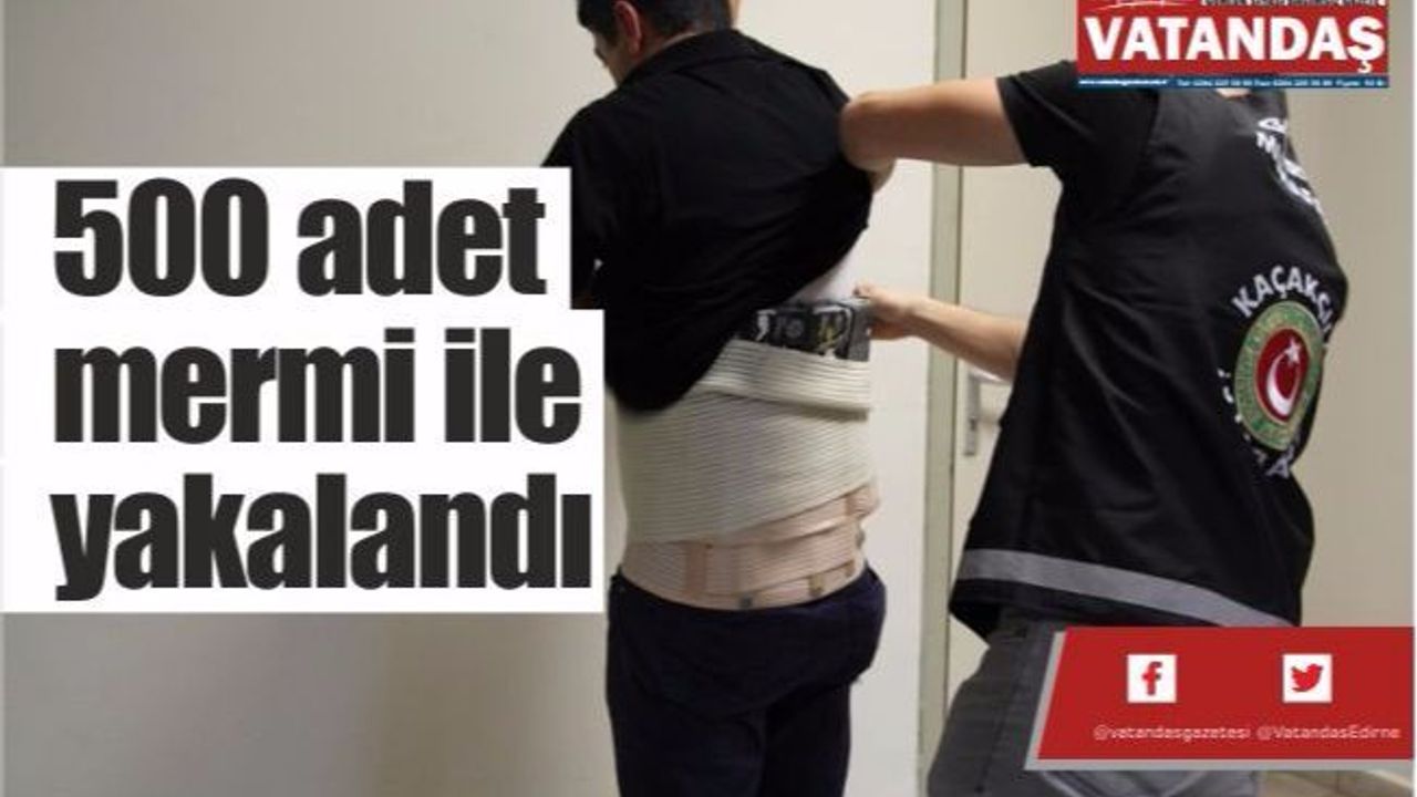 Konuyla ilgili yapılan yazılı açıklama ise şöyle; “Kapıkule Gümrük Sahasına 26.11.2017 tarihinde Türkiye’ye yaya olarak giriş yapmak üzere gelen Türk uyruklu A.A. isimli şahsın hal ve hareketlerinden şüphelenilmesi üzerine yapılan üst aramasında, üzerine sarılı vaziyette bulunan korsenin altında 500 adet G.F.L. 45 A.C.P. ibaresi bulunan tabanca mermisi ele geçirilmiştir.