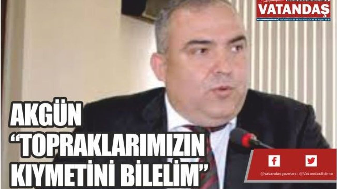 öteden beri ifade ettiği  gibi  köy muhtarlarının   köyün ortak malı olan tarlaları   sattıklarını öğrendiğini, bunu üzüntü ile Karşıladığını belirten Akgün, “.Şunu herkes iyi bilmeli. Edirne büyük şehir olsa dahi Edirne Cumhuriyetçilerin elinde olacaktır. Atatürk ilke ve devrimlerine sadık hiç kimsenin CHP'li belediye başkanının köylülerin bu topraklarına göz dikerek, satması düşünülemez. Şu anda Edirne'de CHP'li belediye var, önemezdeki dönemde de yine CHP'li belediye olacaktır. Buna kimse engel olamaz. Edirne bütün şehir olsa dahi köy muhtarlıklarının tüzel kişiliklerinin devam edeceğinden dolayı köy muhtarlarımızın böyle asılsız bir olaya inanmalarını doğru bulmuyorum. Keşke tarlalarını satan arkadaşlarımız da tarlaları satmamış olsalardı. Bu tarlaları bir anlamda bize devletimiz tarafından verildi onlar devletimizin malı olarak kalmalı. Muhtarlıklarımız da halk tarafından doğrudan seçilen temsilcileridir. Onların bir siyasi partinin güdümüne göre hareket etmeleri doğru değildir” diye konuştu.