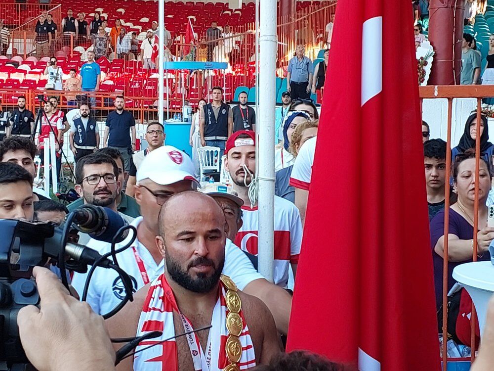 Er meydanında coşku dolu anların yaşandığı törende, altın kemer de bizzat Bakan Osman Aşkın Bak tarafından Orhan Okulu’nun beline takıldı. Bu anlamlı jest, tribünlerden büyük alkış topladı.