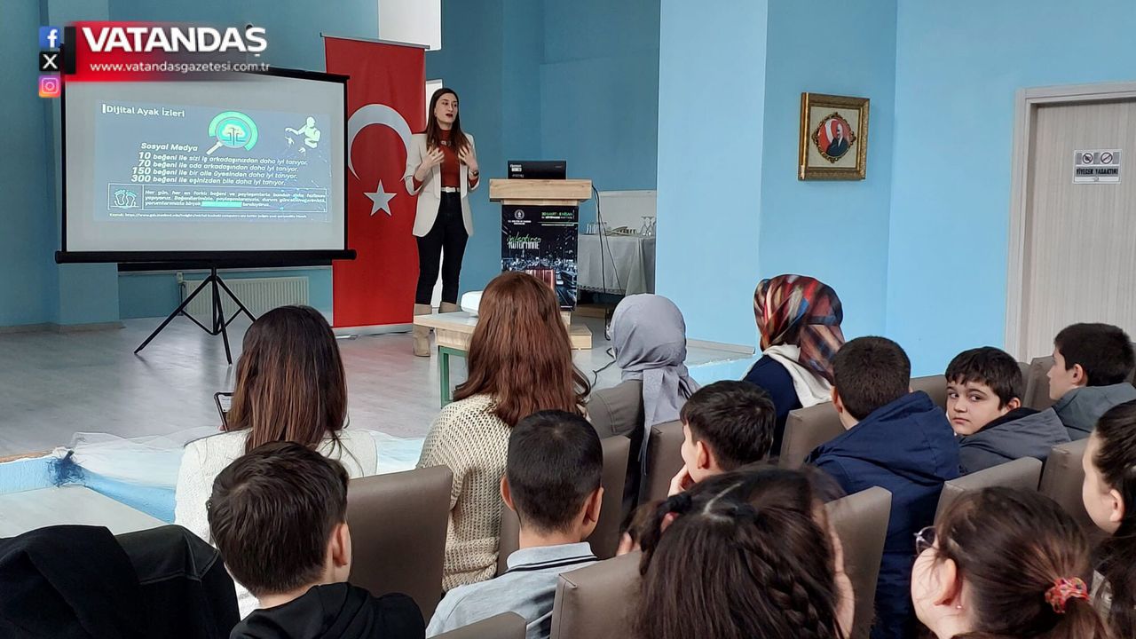 “Teknoloji Bağımlılığı ve Bilinçli İnternet Kullanımı” başlığıyla gerçekleştirilen sunumda Tufan, özellikle gençler arasında giderek yaygınlaşan teknoloji bağımlılığına vurgulandı. İnternetin doğru ve kontrollü kullanımının önemine değinen Tufan, bilinçsiz kullanımın hem akademik başarıyı hem de sosyal ilişkileri olumsuz etkileyebileceğini belirtildi.