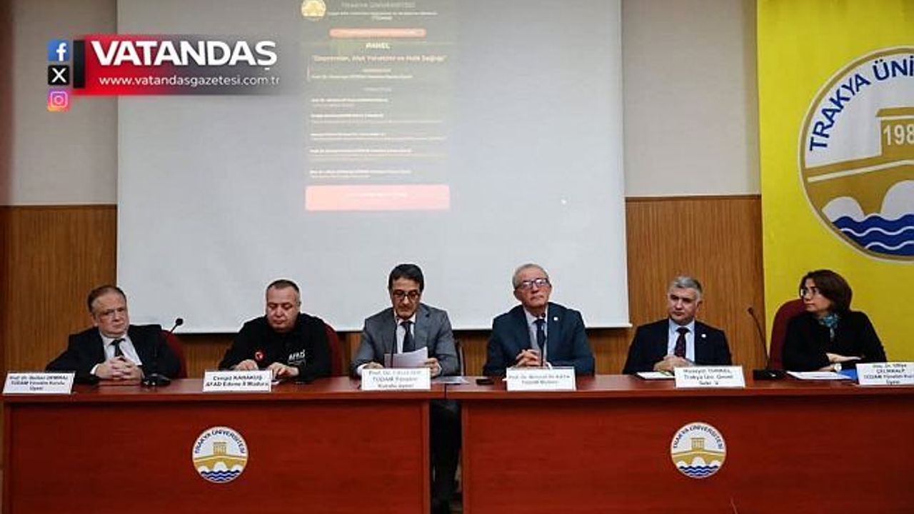 Panelde söz alan Hüseyin Türkel, “Afet Durumunda Trakya Üniversitesinin Göstereceği Refleks Neler Olacaktır?” başlıklı konuşmasında üniversitenin kriz anlarında üstleneceği görevler, koordinasyon mekanizmaları ve kurumsal hazırlık süreçleri hakkında bilgi verdi.