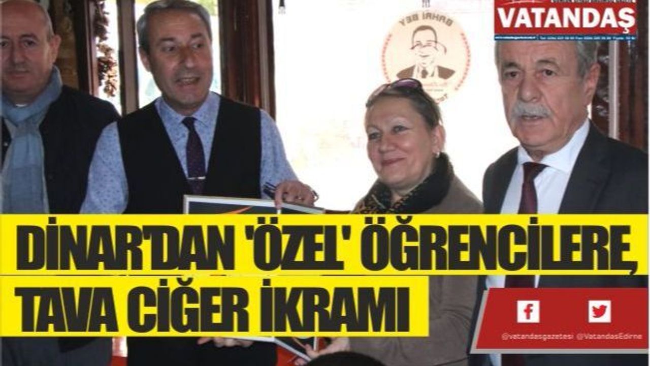 3 Aralık Dünya Engelliler Günü nedeniyle Faika Erkurt Özel Eğitim Ortaokulu'nun 'özel' öğrencileri, Ciğerci Bahri Dinar'ı ziyaret ederek Meşhur Edirne Tava Ciğeri yediler. Öğrenciler kendilerini ağırlayan Dinar'a teşekkür belgesi takdim ettiler.