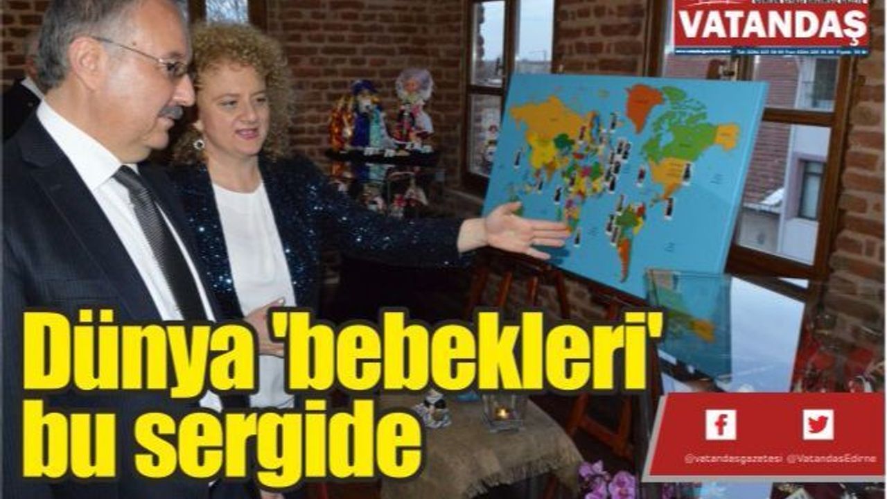 Yaklaşık 20 yıl boyunca dünyanın farklı ülkelerinden toplanan250'ye yakın oyuncak bebek ile 'Geleneksel Kıyafetli Dünya Bebekleri' isimli sergi Edirne Valisi Günay Özdemir'in de katılımıyla açıldı. Vali Özdemir'in açılış kurdelesini kestiği sergiye Cumhuriyet Başsavcısı Muhammet Savran, Vakıflar Bölge Müdürü Osman Güneren, Sosyal Yardımlaşma ve Dayanışma Vakfı Müdürü Hicran Bali, İŞKUR İl Müdürü Şengül Çildam, İl Kültür ve Turizm Müdürü Ahmet Hacıoğlu, İl Milli Eğitim Müdürü Hakan Cırıt ve çok sayıda davetli katıldı.