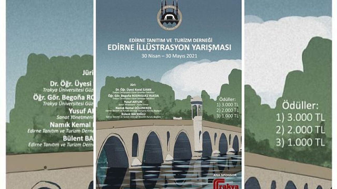 Edirne Tanıtım ve Turizm Derneği tarafından Trakya City Otel Ana Sponsorluğunda düzenlenecek olan Edirne İllüstrasyon Yarışması ile yapılacak olan çalışmaların Edirne’nin tanıtımında kullanılması hedeflendiği duyuruldu. 30 Mayıs 2021 tarihine kadar başvuruları tamamlanacak olan yarışmanın, sonuçları 10 Haziran günü belli olacak. Eserler 30 Mayıs saat 17.00’ye kadar [email protected] adresine gönderilebilecek.