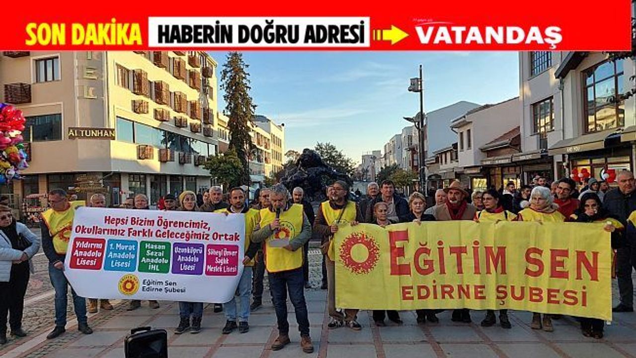 Eğitim-Sen Edirne Şubesi, 2026 yılı Milli Eğitim Bakanlığı (MEB) bütçe teklifine ve Edirne’de yıkılan okul binalarının yerine yenilerinin yapılmamasına karşı Saraçlar Caddesi’nde basın açıklaması gerçekleştirdi. Açıklamayı Eğitim-Sen Edirne Şube Başkanı Ahmet Acet okudu.