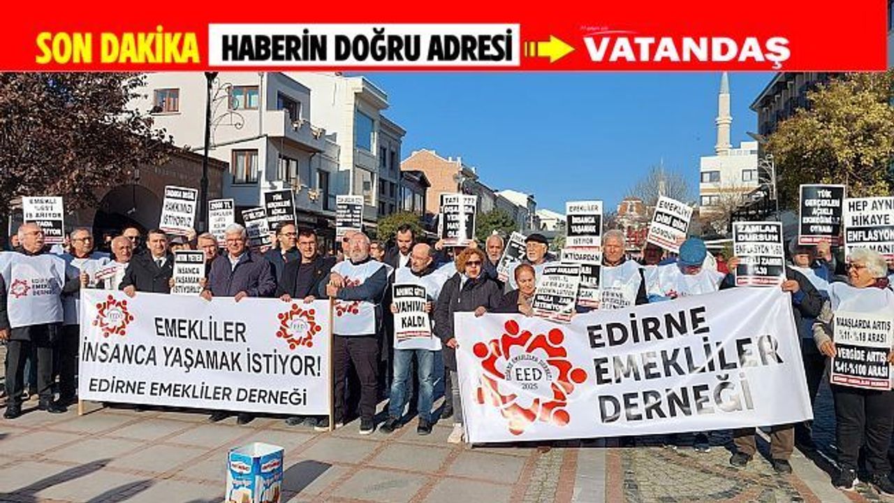 Edirne’de emekliler, Saraçlar Caddesi’nde düzenlenen basın açıklamasıyla geçim sıkıntısına ve emekli maaşlarına yapılan zam oranlarına tepki gösterdi. Edirne Emekliler Derneği öncülüğünde gerçekleştirilen eyleme çok sayıda emekli ile siyasi parti ve sivil toplum kuruluşu temsilcileri katıldı.