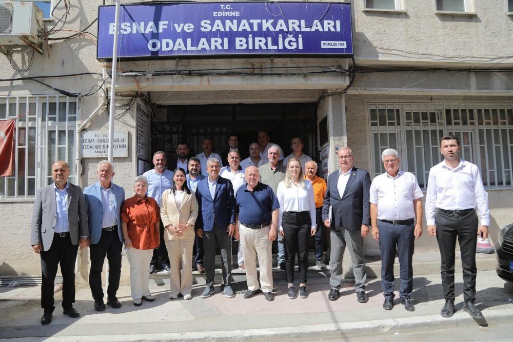 İlk olarak Edirne Esnaf ve Sanatkârları Odaları Birliği (EDESOB) Başkanı Kemal Cingöz’ü ziyaret eden CHP heyeti, esnafın yaşadığı ekonomik sıkıntıları dinledi. Ziyarette konuşan Grup Başkanvekili Gökhan Günaydın, “Esnafımızı yalnızlaştıran değil, onu büyüten ve destekleyen bir düzenin kurulması için mücadelemizi sürdürüyoruz” dedi. Heyet, misafirperverliği nedeniyle EDESOB Başkanı Kemal Cingöz’e teşekkür etti.