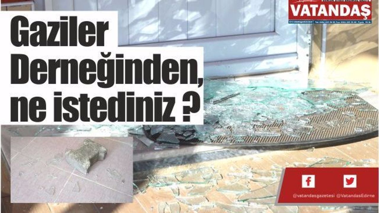 Önceki akşam kimliği henüz belirlenemeyen kişi ya da kişiler tarafından Edirne Muharip Gaziler Derneği'nin camı kırıldı. Saldırının ardından sabah derneğe gelen üyeler derneğe ait olmayan bir halı ve içerisine sarılı bıçak buldular. Halı ve bıçağın neden bırakıldığı konusunda emniyet güçleri araştırmasını sürdürüyor.