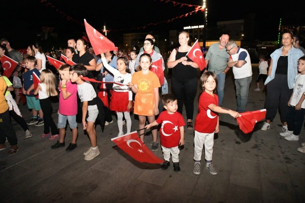 Erikli ve Yayla sahillerinde ise, Zafer Bayramı coşkusu, kortej yürüyüşleriyle yaşandı. Binlerce kişinin katılımıyla gerçekleşen kortejlerde, vatandaşlarımız ellerinde Türk bayraklarıyla sahil boyunca yürüdü.