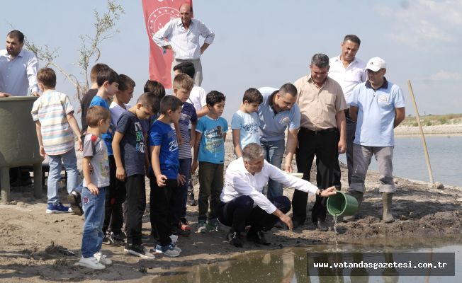 Edirne Tarım ve Orman İl Müdürü Atilla Bayazıt, burada yaptığı açıklamada, “Su ürünleri kaynaklarımızın ve su ürünlerinin sürdürülebilir kullanılması ve gelecek nesillere miras olarak bırakılmasının sağlanabilmesi, deniz ve iç sularımızdaki su ürünleri stoklarının takviyesi amacıyla Bakanlığımız tarafından her yıl 'Su Kaynaklarının Balıklandırılması Projesi' yürütülmektedir. Proje kapsamında Akdeniz Su Ürünleri Araştırma Üretme ve Eğitim Enstitümüzde üretilen 5,1 milyon sazan balığı yavrusu ülkemiz genelindeki 727 adet göl ve göllete bırakılacak olup, 154 bin adedi İlimize tahsis edilmiştir. İl Müdürlüğümüzce ilimizdeki 66 su kaynağına bırakılmak üzere yavru balıkların dağıtımı yapılacaktır. Yurdumuzun ekonomik ve tabii türleri arasında yer alan, vatandaşımız için kaliteli bir protein, balıkçımız için önemli bir gelir kaynağı, hem sportif hem de ticari balıkçıların gözdesi olan balıklar bu yıl itibariyle; İlimizde Çakmak Barajı, Gala Gölü ve 64 adet gölete bırakıldı.” dedi.