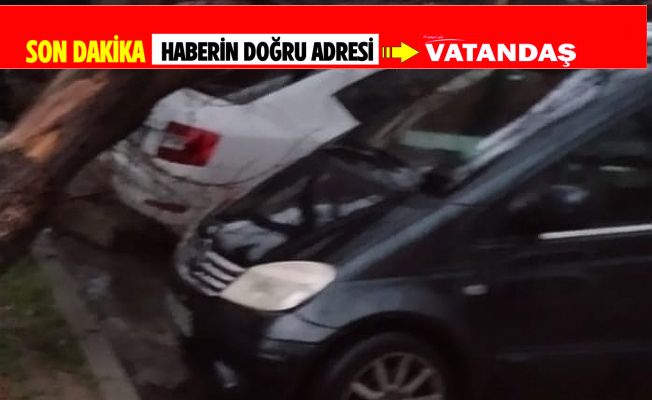 Kuvvetli rüzgar nedeniyle 1. Murat Mahallesi'nde devrilen ağaç bir otomobilin üzerine düştü. Şans eseri yaralanan olmadı.