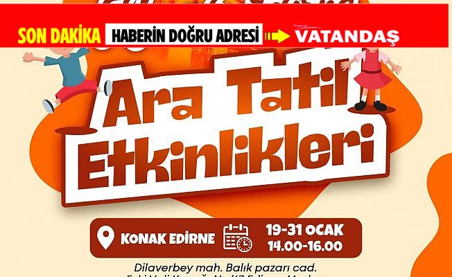 Tatil süresince her gün yenilenen etkinlik programı ile Konak Edirne, ara tatilin buluşma noktası olacak. Belediye yetkilileri, güvenli ve eğlenceli bir ortamda gerçekleştirilen etkinliklere tüm çocukları davet ederek, ailelerin de gönül rahatlığıyla çocuklarını etkinliklere katılabileceğini belirtti.