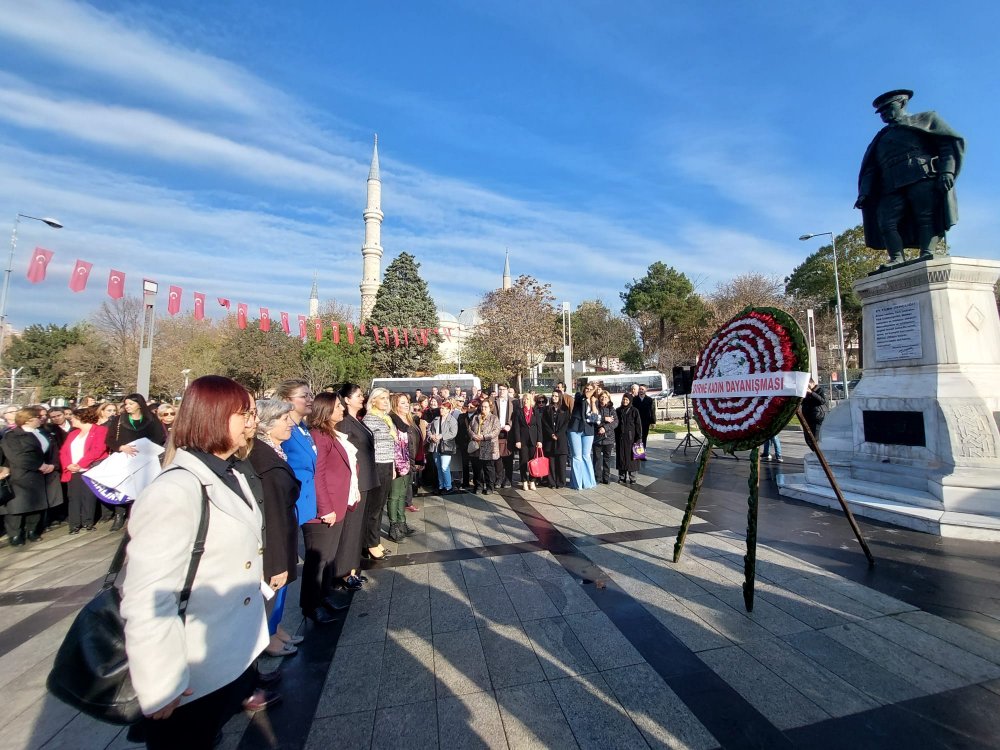 Kaya’nın konuşmasının ardından kadın örgütleri kortej halinde Tarihi Edirne Belediye Binası önünden Atatürk Anıtı’na çelenk sunumu için yürüdü.