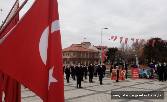 Ulu Önder Gazi Mustafa Kemal Atatürk’ün Edirne’ye gelişinin 90’ıncı yıldönümü dolayısıyla Atatürk Anıtı’nda tören düzenlendi. Covid-19 tedbirleri kapsamında düzenlenen törene; Edirne Valisi Ekrem Canalp, Garnizon Komutanı Tuğgeneral Mehmet Cihanoğlu, Edirne Belediye Başkanı Recep Gürkan, kamu kurum ve kuruluşları ile STK temsilcileri katılım gösterdi. Atatürk Anıtı’na çelenk sunulmasıyla başlayan tören; saygı duruşunda bulunulması ve İstiklal Marşı’nın okunmasıyla sona erdi.