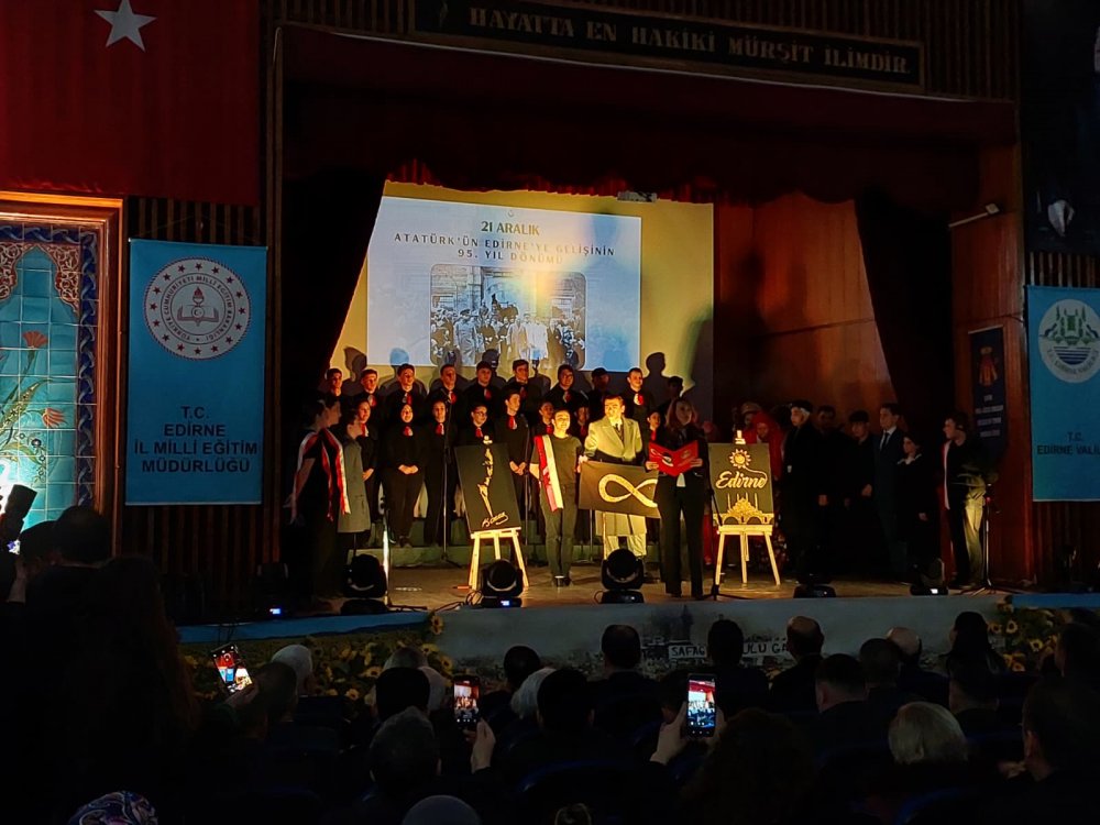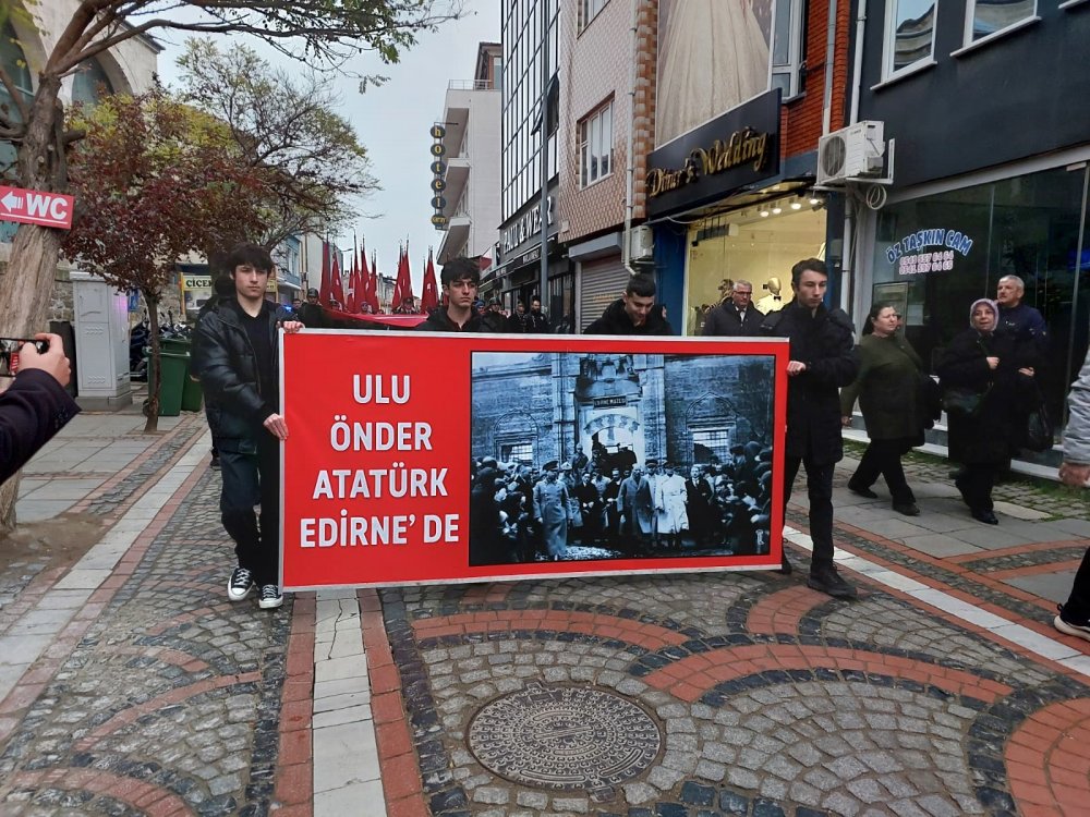 Cumhuriyetin kurucusu Gazi Mustafa Kemal Atatürk’ün 21 Aralık 1930’da Edirne’ye gelişinin 95. yılı, kortej yürüyüşü, çelenk sunma törenleri, sergi açılışları ve sahne gösterileriyle coşkuyla kutlandı.
