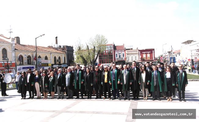 Konuşmasına Edirne halkına seslenerek devam eden Av. Pınar, “ Değerli konuklar, değerli Edirne Halkı; Bugün, Edirne’nin çeşitli noktalarında yer alan afişlerde de görüleceği gibi, hakkınızı ararken yalnız değilsiniz. Avukatlar olarak hep yanınızdayız. Gece gündüz, yaz kış, yağmur çamur, kar fırtına dinlemeden yanınızdayız. Sizi, yılmadan, usanmadan, vazgeçmeden savunuruz. Hak arama özgürlüğünüzün garantörüyüz. Sırdaşınızız. Derdinizin ortağıyız. Haksızlığa uğradığınızda, adalet aradığınızda sizin sesiniz, haykırışınız oluruz ve karşı koyarız. Direniriz. Eğilmeyiz, bükülmeyiz, kırılmayız. Böyle zamanlarda tek bir duruşumuz vardır. O da savunma ve hak arama özgürlüğünüzü korumada gösterdiğimiz sağlam ve sarsılmaz irademizdir. Bu iradeyi kullanırken, anayasayı, kanunları ve hukuk düzenini dayanak alırız. Başka bir dayanağımız, arka planımız, kılavuzumuz yoktur. Davamızı Kişiselleştirmeyiz, ancak içselleştiririz. Duygularımız vardır ancak mantığımız da vardır. Tarih boyunca bizi belli kalıplara sokmak isteyenler olmuştur ancak her defasında hüsrana uğramışlardır, biz tek bir kalıba gireriz, savunma uğruna taş oluruz, kırılmayız, yıpranmayız, aşınmayız. Avukatız biz. Biz avukatız.