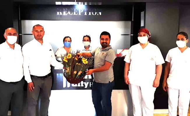 Edirne Tanıtım ve Turizm Derneği Başkanı Bülent Bacıoğlu, Covid-19 pandemi sürecinde zor şartlarda çalışan sağlık personeline ev sahipliği yapan Trakya City Otel’e teşekkür ziyareti gerçekleştirdi. Bunun çok anlamlı bir davranış olduğunu belirten Bacıoğlu, “Trakya City Otel’in Edirne’de bu süreçte sağlık çalışanlarını misafir ettiğini, onlara kolaylık sağladığını, onlara destek olduğunu biliyoruz. Lavantalı ve ayçiçekli buketlerimizi o zor dönemde sağlık çalışanlarına ev sahipliği yapan Trakya City Otel personeline sunmak istedik.” ifadelerini kullandı.