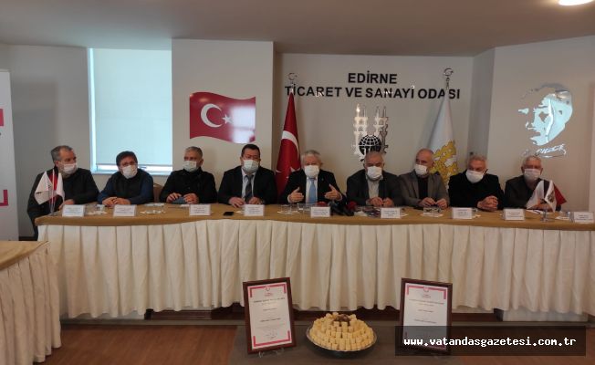 Edirne’ye özgü ürünlerin tescillenmesi için ciddi çalışmalar yaptıklarını vurgulayan Zıpkınkurt, “Edirne Beyaz Peyniri, meyve mis sabunu, badem ezmesi odamız tarafından tescillendi. Edirne tava ciğerimiz ise Edirne Esnaf Odası tarafından tescillendirildi. Deva-i Misk ise Edirne Ticaret Borsası’nın tescil ettirdiği bir ürünümüz. Keşan satır eti, İpsala pirinci, Keşan siğilli bamyası da tescillendi. İleriki zamanlar da ise Edirne Çinisi, talika, bez bebekler, Ayşe Kadın fasulyesi, minyatür kispet, akıtma, ciğer sarma, ipek böcekçiliği, çeltik tarağı, kabak çekirdeği, hanım tırnağı, Karaağaç biberi, Lalapaşa karaçalı balı, edirnekari, kurbağa bacağı, kırmızı dipli mum ile ilgili de gerekli çalışmaları yapıyoruz. Umarım en yakın zamanda Edirne adına birkaç ürünümüzü daha tescillemiş oluruz. Şehrimizin hem tanıtımına hem de turizm alanında farklılıklar yaratacağını düşünüyorum.” şeklinde konuştu.