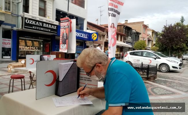 Pandemi dolayısıyla kan ihtiyacının artması ve kan bağışlarında düşüş yaşanması, stokların sınırın altına düşmesine neden oldu. Kan stoklarında yaşanan erimeye çare bulabilmek adına geçtiğimiz günlerde Edirne Vali Yardımcısı Ali Uysal başkanlığında toplantı yapılmış ve 16-17-18 Ekim tarihlerinde an bağışı kampanyası düzenlenmesi kararı alınmıştı. Bu kapsamda dün Saraçlar Caddesi’nde kurulan Kızılay Çadırında, kan bağışı kampanyasının ilk günü gerçekleştirildi. Kan stoklarının sınırda olduğunu belirten Kızılay Edirne Şube Başkanı Kadir Çakay, Edirne halkını kampanyaya katılmaya davet etti.
