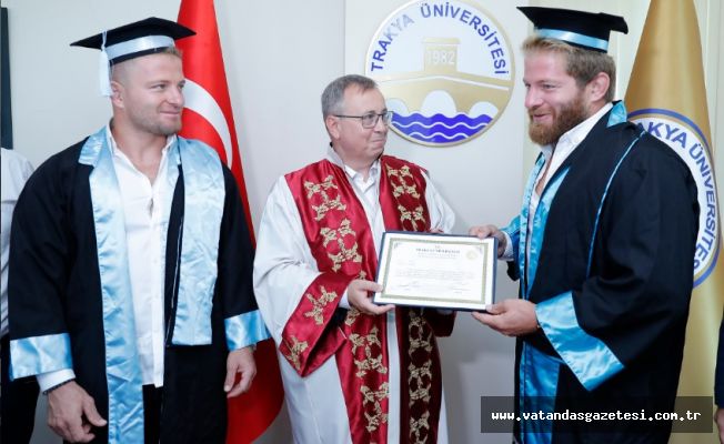 Türkiye’de ilk defa Trakya Üniversitesi tarafından pehlivanlara sağlanan akademik eğitim imkânının ilk meyvelerinin İsmail ve Turan Balaban olduğuna dikkat çeken Rektör Prof. Dr. Erhan Tabakoğlu “Kendilerinin Kırkpınar haftasında mezun olmalarının hoş bir tevafuk olduğu inancındayım. Balaban kardeşler hem çayırdan hem de artık akademiden yetişmiş bireyler olarak 660 yıllık bir geleneğin temsilcisi olarak bu mirası geleceğe taşıyacaklar. Kendilerinin doktoraya da Trakya Üniversitesi çatısı altında devam etmelerini temenni ederim.” dedi.