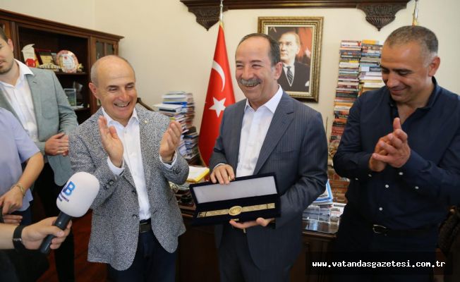 Kendisine yapılan ziyaretten duyduğu memnuniyeti dile getiren Belediye Başkanı Recep Gürkan, “Kırkpınar’da üst üste 3 kez başpehlivan olan altın kemerin ebedi sahibi olur. Biz tabi altın kemerin orijinalini veremiyoruz Ama siyasetin belediye başkanlığı anlamında başpehlivanı olan Hasan Akgün’e ben de sembolik bir altın kemer hediye ediyorum” diyerek, Akgün’ü belediye başkanlığının başpehlivanı ilan etti.