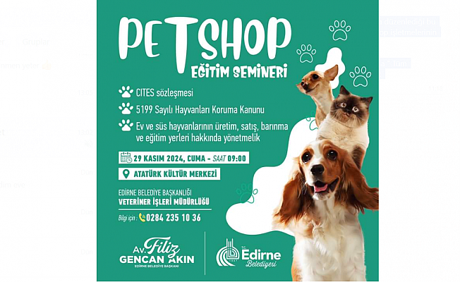 Edirne Belediyesi, hayvan dostu bir şehir olma hedefi doğrultusunda düzenlediği bu seminerle, hayvan hakları konusunda farkındalığı artırmayı ve petshop işletmelerinin yasal çerçeveye uygun faaliyet göstermesini sağlamayı amaçlıyor.