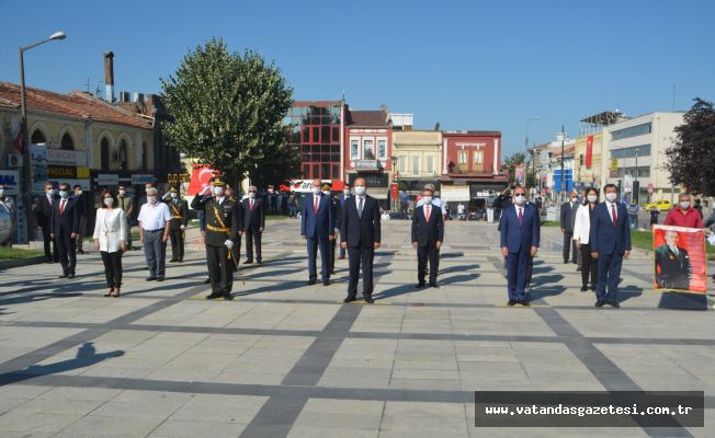 30 Ağustos Zafer Bayramı’nın 98. yıdönümü Atatürk Anıtı’na çelek sunularak kutlandı. Edirne Valiliği, Garnizon Komutanlığı ve Edirne Belediyesi tarafından Atatürk Anıtı’na yapılan çelenk sunumunun ardından Saygı duruşu ve Edirne Belediye Bandosu eşliğinde İstiklal Marşı okundu. Düzenlenen çelenk sunma törenine Edirne Valisi Ekrem Canalp, AK Parti Edirne Milletvekili Fatma Aksal, CHP Edirne Milletvekili Okan Gaytancıoğlu, Garnizon Komutanı Vekili Albay Şevket Erhan, Belediye Başkanı Recep Gürkan, Cumhuriyet Başsavcısı Fatih Karabacak, Baro Başkanı Av. Alper Pınar, AK Parti Edirne İl Başkanı Belgin İba, MHP İl Başkanı Zakir Tercan, ve kurum müdürleri katılım sağladı. Kovid-19 tedbirleri kapsamında tören az sayıda katılım ile gerçekleşti.