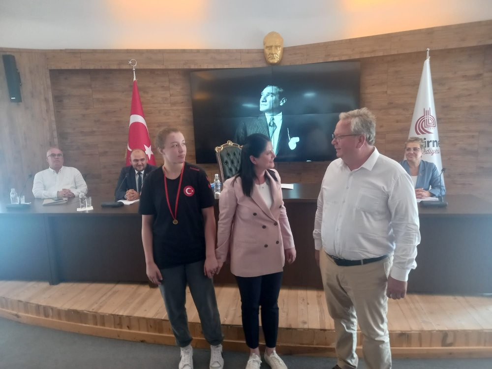 Bu arada, Belediye Başkanı Filiz Gencan Akın, geçtiğimiz günlerde Yunanistan'da düzenlenen U 17 Kadınlar Dünya Güreş Şampiyonası'nda 3. lük kazanan Eylem Engin'i toplantı sonrasında tebrik etti ve bu başarısından dolayı gurur duyduğunu belirterek, altın madalya hediye etti. Başkan, genç güreşçinin başarısı ile Edirnelilerin gururu olduğunu, bundan sonrada bayşarılı sonuçlar beklediklerini söyledi.