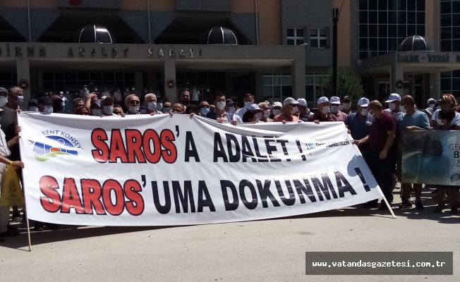Çevreciler adına gazetecilere açıklama yapan Keşan Kent Konseyi Bakanı Hasan Karagöz, ülkemizin alev topuna döndüğü bu günlerde Saros gibi bir güzelliğin kendi elimizle yok edilmesine izin vermeyeceklerini dile getirdi. Yaptıkları girişim ve mücadelelerle birinci ÇED olumlu raporunu iptal ettirdiklerini hatırlatan Karagöz, “Bugün ikici ÇED olumlu raporunu görüşüyorlar. Şu anda avukatımız içeride. Biz adalete güveniyoruz. İkinci ÇED raporu 2 ay masa başında düzenlenmiş sahte bir rapordur. Kopyala yapıştır raporudur. 10 Mart 2020 günü Botaş Çevre Şehircilik Bakanlığı’na 2009’a 7 sayılı genelgeden yararlanabilir miyiz? diyor. 12 Mart tarihinde bakanlık cevap veriyor. Yararlanabilirsiniz diyor. 12 Mart’tan 6 Mayıs’a kadar 2 bin 50 sayfa rapor hazırlanıyor. Sahaya inmeden 1,5 ay içinde masa başında hazırlanan bir raporla Saros’u katletmek istiyorlar. Yargının ve bilim insanların da buna hayır diyeceğine güvenimiz tamdır. Yargıya güvenimiz tamdır. Birinci ÇET’İ iptal eden aynı mahkemeye güveniyor ve inanıyoruz” şeklinde konuştu.