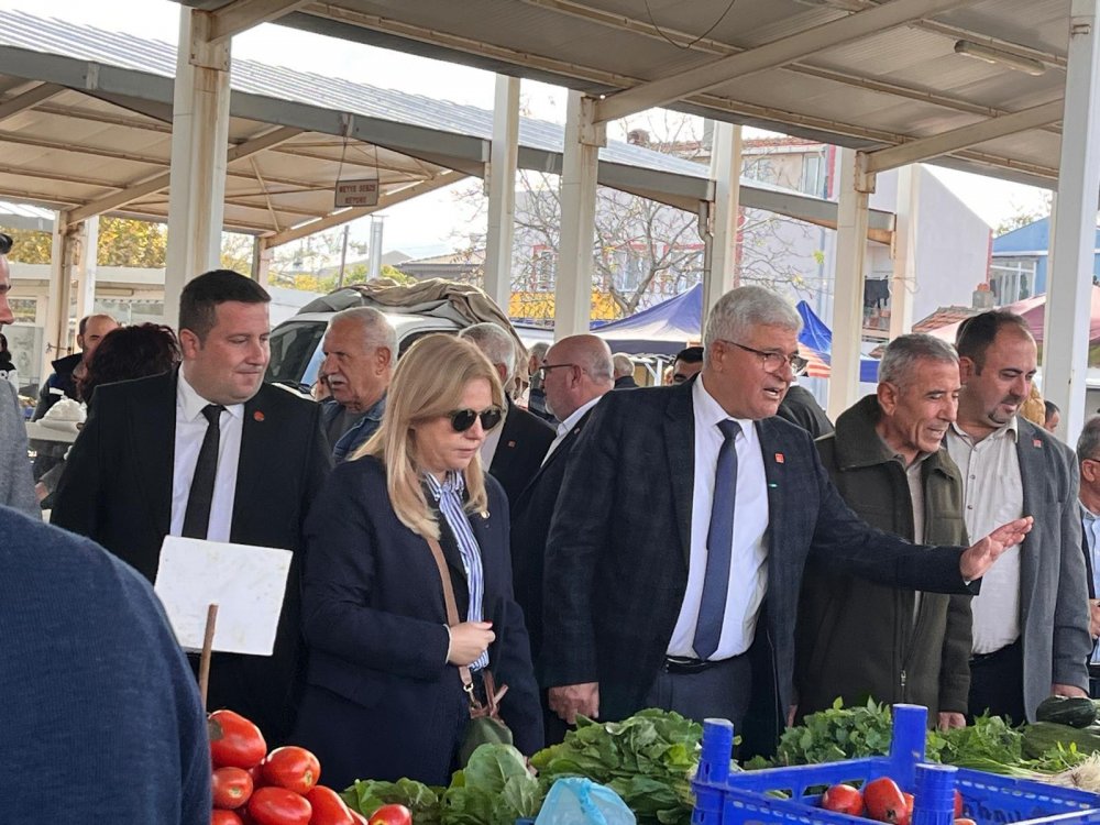 Ziyaretin ardından halk pazarını gezen CHP heyeti, vatandaşlarla sohbet ederek ekonomik kriz karşısında yaşanan sıkıntıları yerinde dinledi.