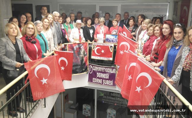 Cumhuriyet Kadınları Derneği Edirne Şubesi tarafından 29 Ekim Cumhuriyet Bayramı nedeniyle basın açıklaması gerçekleştirildi. Şube binasında gerçekleştirilen basın açıklamasına Edirne İl Genel Meclis Başkanı Mehmet Geçmiş, Edirne Belediye Meclis Üyeleri, Atatürkçü Düşünce Derneği Başkanı Celil Özcan, Edirne Şehit Aileleri Derneği Başkanı Faruk Çiftçi ve çok sayıda sivil toplum kuruluşunun temsilcisi katıldı.