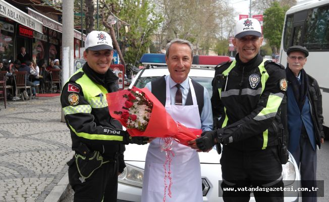 Edirne’nin gönüllü turizm elçisi Bahri Dinar, Türk Polis Teşkilatı’nın 174’üncü Kuruluş yıldönümü nedeniyle, görev başındaki polis memurlarına çiçek hediye ederek günlerini kutladı.