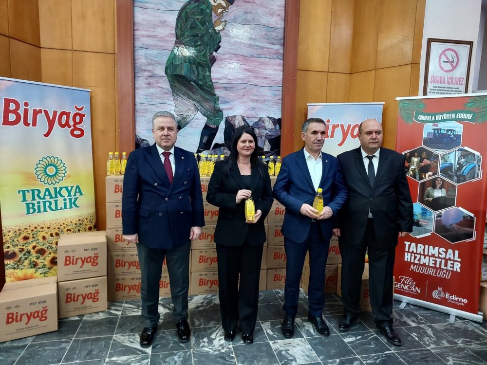 Trakya Birlik Yönetim Kurulu Başkanı Şafak Kırbiç ise Edirne Belediyesi ile gerçekleştirilen iş birliğinden memnuniyet duyduklarını belirtti. Kırbiç, “Belediyeye ait arazilerde üretilen ayçiçeklerinin hasat edilmesinin ardından Sayın Başkanımızın bu ürünlerin mamule dönüştürülerek ihtiyaç sahibi ailelere ulaştırılması yönündeki teklifini memnuniyetle kabul ettik. Bugün bu projenin sonucuna ulaşmış olmaktan mutluyuz” dedi.