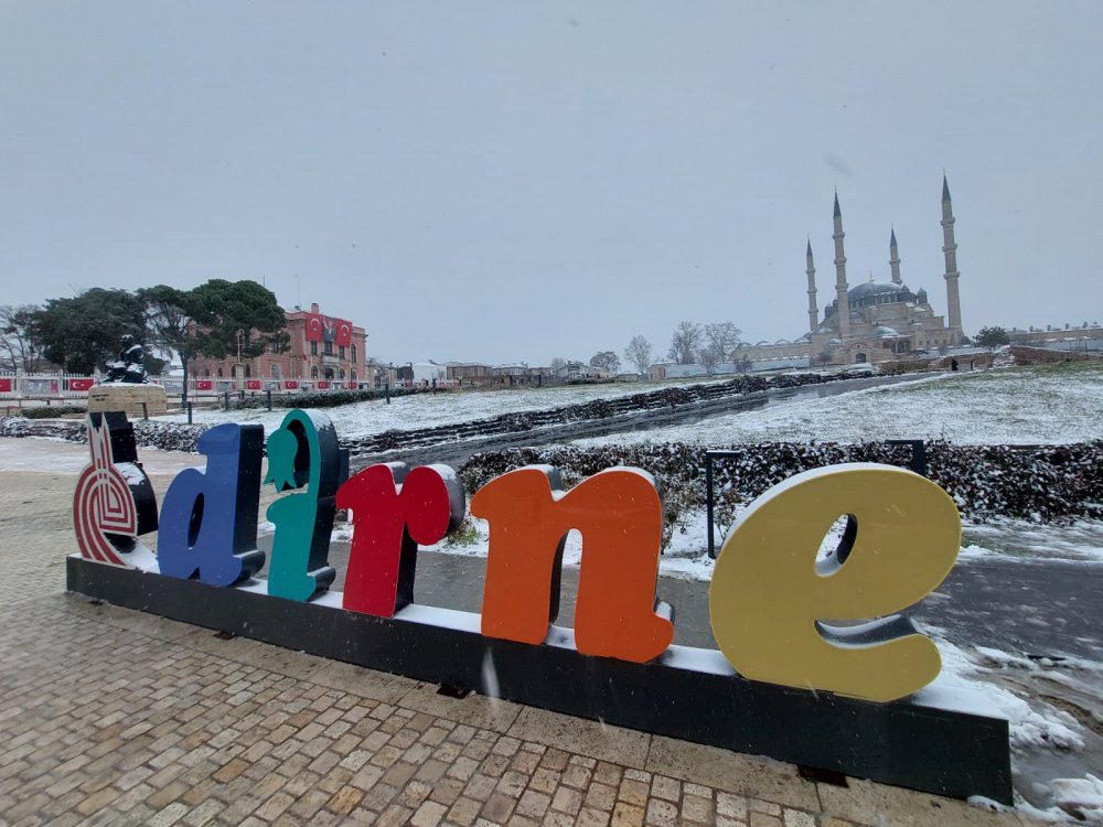 Edirne’de gece saatlerinde başlayan kar yağışı, sabah saatlerinden itibaren etkisini artırarak kent genelinde hayatı olumsuz etkiledi. Kar yağışıyla birlikte kentin simgelerinden Selimiye Camii başta olmak üzere birçok cadde ve sokak beyaz örtüyle kaplandı.