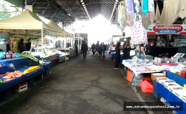 İçişleri Bakanlığı genelgesinin korona virüs tedbirleri kapsamında hafta sonu uygulanan sokağa çıkma yasağı nedeniyle her hafta Cumartesi günü kurulan Pazar geçtiğimiz hafta Cuma günü kuruldu. Önceki haftalarda oldukça yoğun olan Pazar, Cuma günü ise sakindi. Hafta sonu uygulanan sokağa çıkma yasağı öncesi vatandaşların pazara akın etmesini bekleyen pazarcı esnafı ise yaşanan sakinlik nedeniyle beklediğini bulamadı.