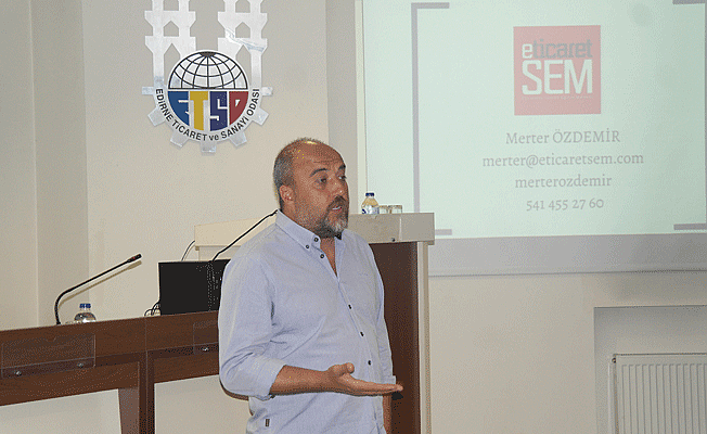 Edirne Ticaret ve Sanayi Odası’nda oda üyelerine “Trakya Dijitalleşiyor Projesi” kapsamında, Trakya Kalkınma Ajansı, Edirne Ticaret ve Sanayi Odası ve E-ticaret Eğitim Merkezi, E-ticaret SEM Merkezi tarafından desteklenen e-ticaret eğitimi verildi.