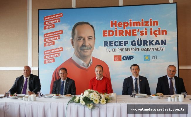 Edirne Belediye Başkanı ve Millet İttifakı Edirne Belediye Başkan Adayı Recep Gürkan, burada yaptığı konuşmada, “Yaklaşık 45 gündür sahanın her noktasında çalışıyoruz. Birçok konuşmada da gündeme getirdiğimiz gibi, biz bu seçimleri bir tarafıyla sadece yerel seçim olarak görüyoruz. Çünkü yerel seçimde halk bulunduğu seçim bölgesinde belediye başkanını, meclis üyelerini ve il genel meclis üyelerini yani yerel yöneticilerini seçecek. Önümüzdeki 5 yıllık süreçte kentinin, köyünün nasıl ve kimler tarafından yönetilmesi gerektiğini, hangi projeleri daha çok takdir ettiğini, iradesiyle ortaya koyacak. Burada asıl olan vatandaşın oy kullanma, demokrasi hakkının özgür bir biçimde sandığa yansıması ve yine sandıktan da şaibesiz bir biçimde çıkmasıdır. Bizlerin Millet İttifakı olarak birinci önceliğimiz bu. Tabii hiçbir yerel seçimi ülkenin gidişatından ayırmak mümkün değil. Çünkü ülkenin genelinde olan her şey, yereli de mutlaka doğrudan etkilemekte. Biz siyasetçiler bir anlamda seçim derdindeyiz ama vatandaş seçim derdinde değil. Halkın ve esnafın neredeyse tamamı geçim derdinde. Ülkemizde geçim derdi o kadar yakıcı bir hale geldi ki, hangi toplumsa statüde olursa olsun tüm vatandaşlar ağlaşıyor, yakınıyor ve geçmişte iktidara oy verdikleri için de pişmanlıklarını epey de sert bir biçimde dile getiriyorlar. Bu tablodan da görüyoruz ki, Millet İttifakı olarak sadece Edirne'de değil Türkiye'nin birçok yerinde bu seçimin en büyük gücü halkın millet ittifakının doğru politikalarına göstereceği teveccüh olacaktır.” dedi.