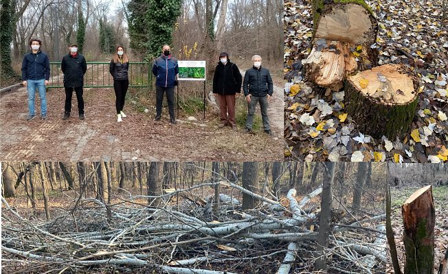 Türk Yunan Bulgar Dostluk Grubu Derneği Bisiklet Topluluğu Koordinatörü Esra Bursalı, basın mensuplarına yaptığı açıklamada, “Buradaki ağaçların hesapsızca, denetimsiz bir şekilde kesiliyor olmasından dolayı şikayetçiyiz. Buraya her ziyarete geldiğimde; el arabalarıyla taşınan yaş ağaçlar görüyorum ve çok üzülüyorum. Bu duruma müdahale edemiyoruz. Neden denetim altında tutulmadığını da anlayamıyoruz. Bunun cevabını arıyoruz. Muhtemelen buraya yakın oturan ve maddi durumu iyi olmayan ailelerin ısınma için kestiklerini düşünüyoruz. Kesilen ağaçları da fotoğrafladık. Ağaçlar kuru değil, yaş ağaçlar. Bu alanda yürüyüş yaptığınızda görebiliyorsunuz. Burasının basit bir denetim sistemiyle bile kontrolü sağlanabilir diye düşünüyorum. Edirne Belediyesini, Edirne Orman İşletme Müdürlüğünü göreve çağırıyoruz. Halkımızı da bu konuyla ilgili bilinçli olmaya davet ediyoruz. Bu orman birçok özel kuş türünün ev sahibi aslında. Sadece bize ait olmadığını bilelim.” dedi.