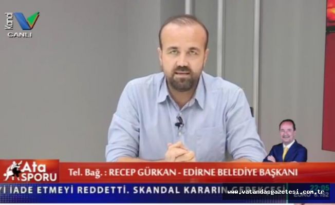 Edirne Belediye Başkanı Recep Gürkan, Antalya’nın yerel televizyonu Kanal V’de yayınlanan ‘Ata Sporu’ isimli televizyon programına telefonla katılarak, Sunucu Ramazan Toksöz’ün sorularını canlı yayında yanıtladı.