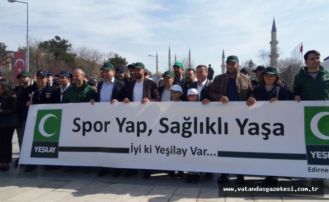 Türkiye Yeşilay Cemiyeti Edirne Şube Başkanı Sebahattin Bilgiç etkinlikte yapmış olduğu açıklamada, “1 Mart Yeşilay Haftası vesilesiyle bir seri etkinlikler düzenledik. Bu hafta vesilesiyle düzenlediğimiz son etkinliği bugün gerçekleştiriyoruz. Bu etkinliğimizi sağlıklı yaşama, hareketli yaşama dikkat çekmek amacıyla yürüyüş olarak düzenledik. Şu anda hareketsiz yaşam, tüm uzmanların dikkat çektiği bir konu. Birçok hastalığın en büyük sebebi olarak gösteriliyor. Çarşamba günü çocuklarımızla bir futbol turnuvası gerçekleştirmiştik. Bugün de yetişkinlerimizle buradan başlayarak Sarayiçi’ne kadar doğa yürüyüşü yapacağız. Amacımız, bağımlılıktan uzak bir şekilde sağlık yaşama dikkat çekmek. Ailelerin bir şekilde huzurlu ve mutlu olmalarını sağlamak. Bizim bu seneki sloganımız, ‘Yeşilaycı olmak için bir nedenim var’ Bizim de bir değil, birçok nedenimiz var. Halkımızı, çocukları, toplumu seviyoruz ve hep beraber sağlıklı, huzurlu bir yaşam istiyoruz.” dedi.