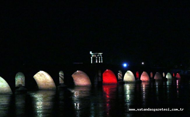 Edirne’nin gerdanlıkları olarak bilinen ve Osmanlı’ya ait eserler içerisinde göz kamaştıran Tunca ve Meriç Köprülerinin güzelliklerine, güzellik katıldı. Edirne Valiliği İl Özel İdaresi tarafından gerçekleştirilen proje kapsamında tarihi köprülerin kemerleri, LED aydınlatmayla ışıklandırıldı. Özel İdare Genel Sekreteri Alaaddin Uğur, projeyle ilgili bilgiler vermek üzere önceki gün Meriç Köprüsü yanında basın açıklaması düzenledi. Projeyle beraber köprülerin tüm renklerle ışıklandırılabilecek duruma geldiğini söyleyen Uğur, dini ve ulusal bayramlarda köprülerin Kırmızı-Beyaz ışıklandırılmasını tercih edeceklerini belirtti.