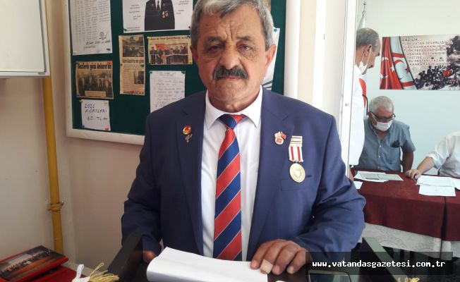 “Bu aziz vatanı bizlere armağan eden ve ulusumuzun bugünlere gelmesinde bizlere yol gösterici olarak tükenmez ufuklar açan başta ulu önderimiz gazi Mustafa Kemal Atatürk'ü ve silah arkadaşlarını, aziz şehitlerimizi ve ebediyete intikal etmiş tüm gazilerimizi rahmet minnet ve şükranla anıyorum. Malumunuz üzere 2019 yılından beri tüm dünyayı etkisi altına alan Kovid- 19 virüsü bizleri de bir araya getirmedi. Bu sebeple olağan genel kurulumuzun toplantısını bugün yapmaktayız. Derneğimizin olağan genel kuruluna katılarak göstermiş olduğunuz ilgi alakaya teşekkür eder yeni yönetimin tüm gazilerimize şimdiden hayırlı olmasını dilerim.”