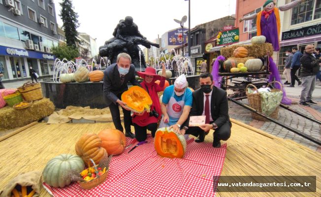 Soytürk’ün açıklamasının ardından törene renk katmak amacıyla bir kabak testere yardımıyla parçalandı. Parçalanan kabağın festival alanında tatlı olarak ikram edileceği bildirilirken, caddedeki onlarca kişi standın fotoğrafını çekerek bu güzel günü ölümsüzleştirdi.